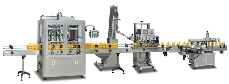 Den automatiska påfyllningsmaskinen med stor volym av: rulltransportlinje (på cylindern), öppna lockstationen, fyllningsstation, stämplade, pneumatisk kapning, stängningsstation, kraftanslutningsrullstransportlinje, färdig tunnkombination - fyra fatkod i träskottet (2 × 2 yard hinkplattform), kraftsystem, pneumatiskt system, vägningssystem, antidropps pumpsystem, elektriska system och andra system.